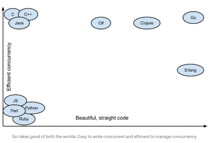 상기한 특징들은 Go를 매우 강력하게 만들어, JAVA, C 및 C++과 같이 동시성을 처리하면서 실행코드를 간결하고 아름답게 유지할 수 있게 된다.