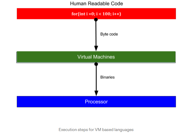 프로세서는 바이너리를 이해한다. 보편적으로 프로젝트를 컴파일 할 때 Java 또는 기타 JVM 기반 언어를 사용하여 어플리케이션을 빌드하면 사람이 읽을 수 있는 코드를 JVM 또는 기본 OS상에서 실행되는 다른 가상 머신에서 이해할 수 있는 바이트 코드로 컴파일하게 된다. 실행되는 동안 가상머신은 이러한 바이트 코드를 해석하고 프로세서가 이해할 수 있는 바이너리로 변환한다.