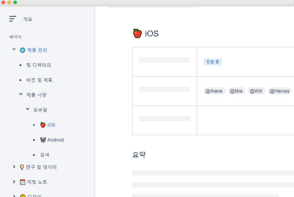 컨플루언스는 참여 멤버와 모든 페이지를 공유하며 멘션기능을 통해 서로 즉각적인 피드백을 줄 수 있습니다.